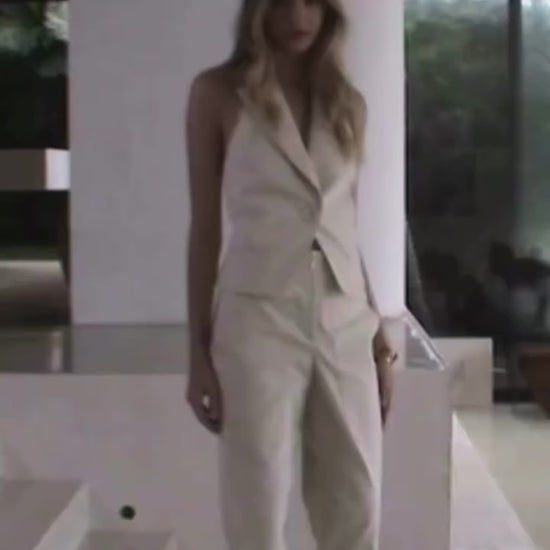 Conjunto Calça e Blusa Frente Unica Com Decote Profundo.
